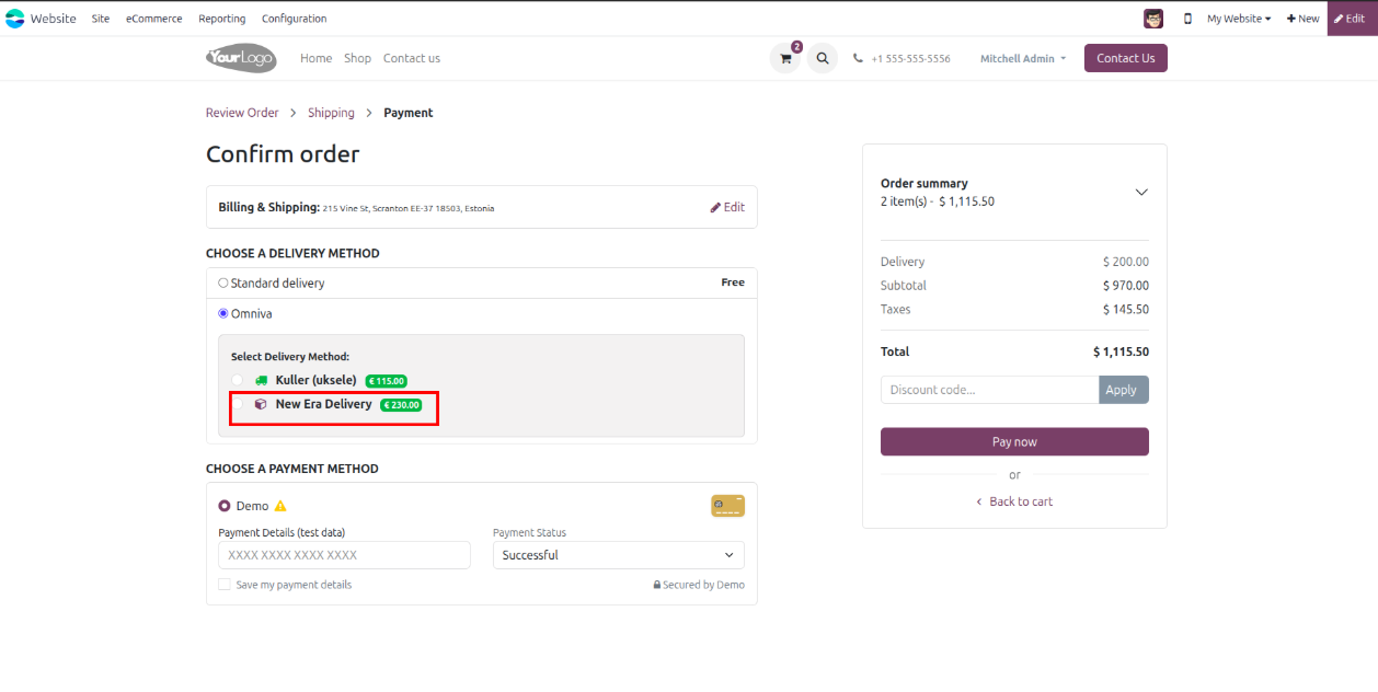 - Later if user change the field Parcel Machine Label with custom label as ex, New Era Delivery these same name will be shown into website checkout page.